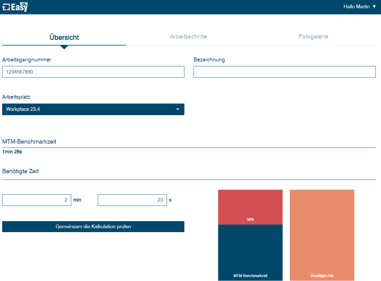 Beschreiben Sie Ihre Arbeitsplätze in der Montage und berechnen Sie Ihre Produkte mit Piktogrammen. Vergleichen Sie Ihre tatsächlichen Zeiten mit der MTM-Benchmarkzeit und maximieren Sie Ihr Potenzial.